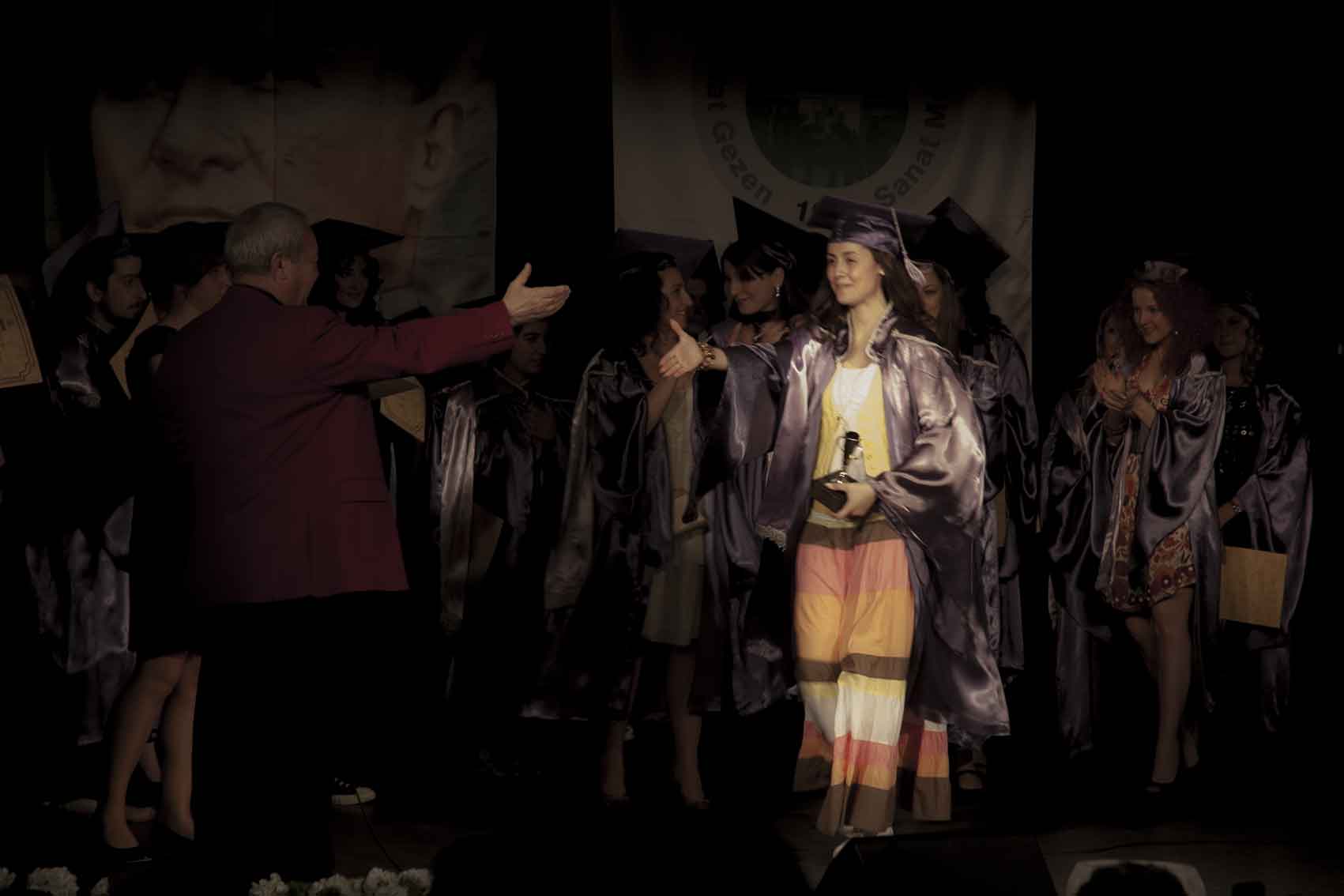 Toprak tiyatro bölümünü birincilikle bitirdi. Kupasıyla.